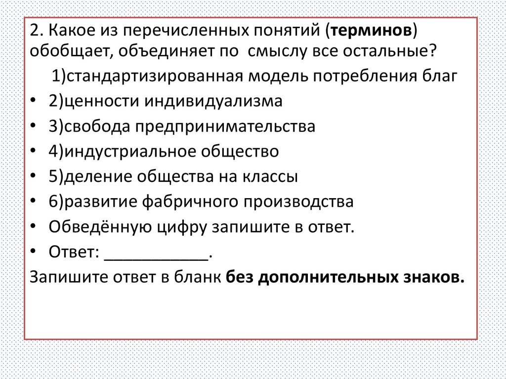 2. Какое из перечисленных понятий (терминов)обобщает, объединяет по смыслу все остальные?