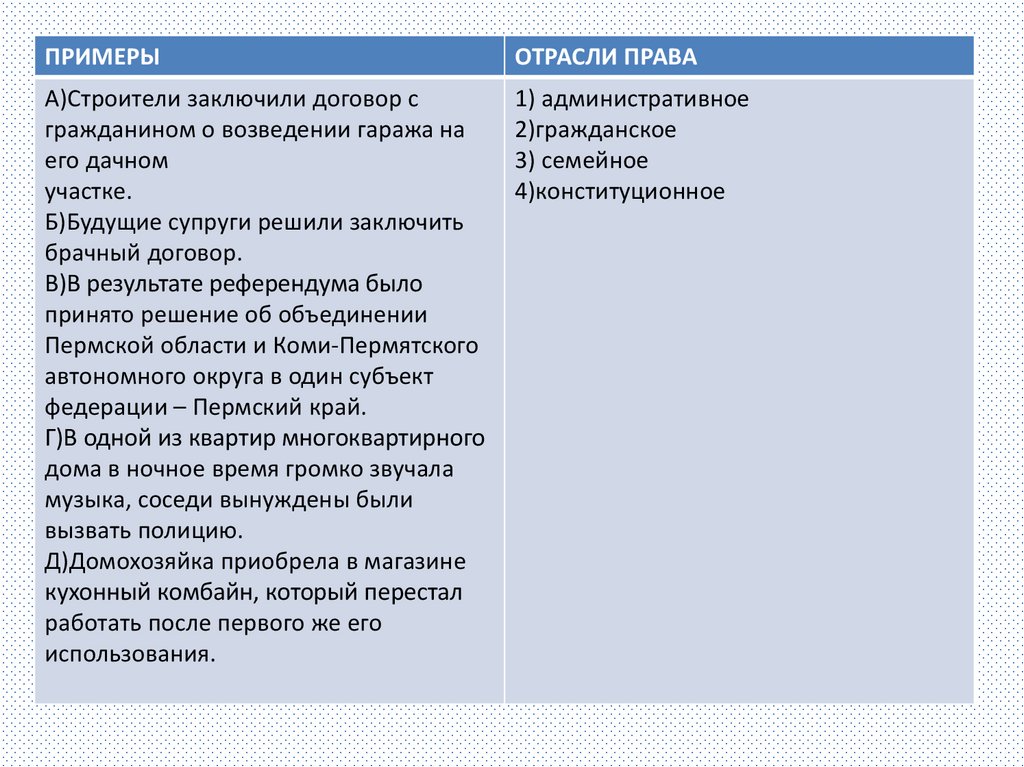 ПРИМЕРЫОТРАСЛИ ПРАВА