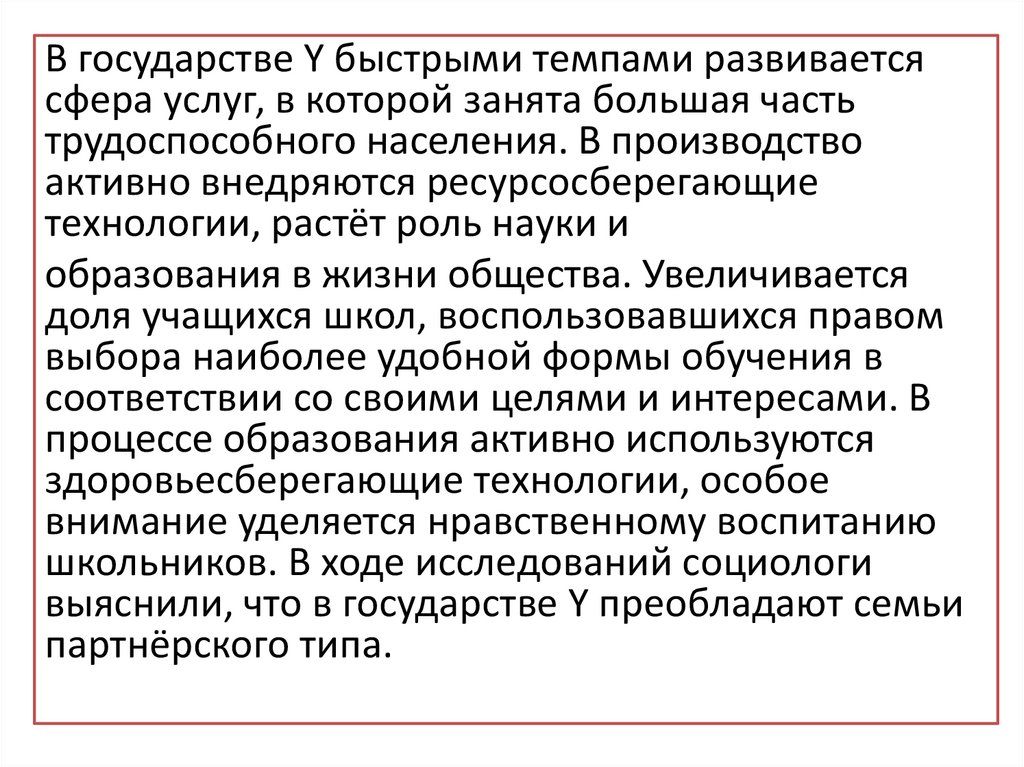 В государстве Y быстрыми темпами развиваетсясфера услуг, в которой занята большая часть
