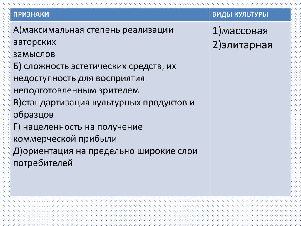 ПРИЗНАКИВИДЫ КУЛЬТУРЫ