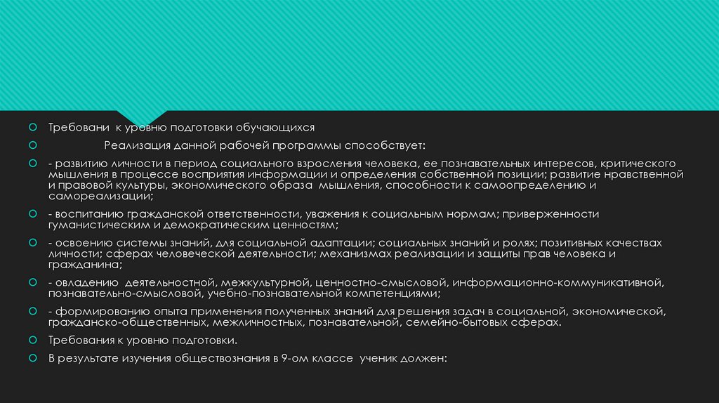 В результате изучения обществознания в 9-ом классе ученик должен: