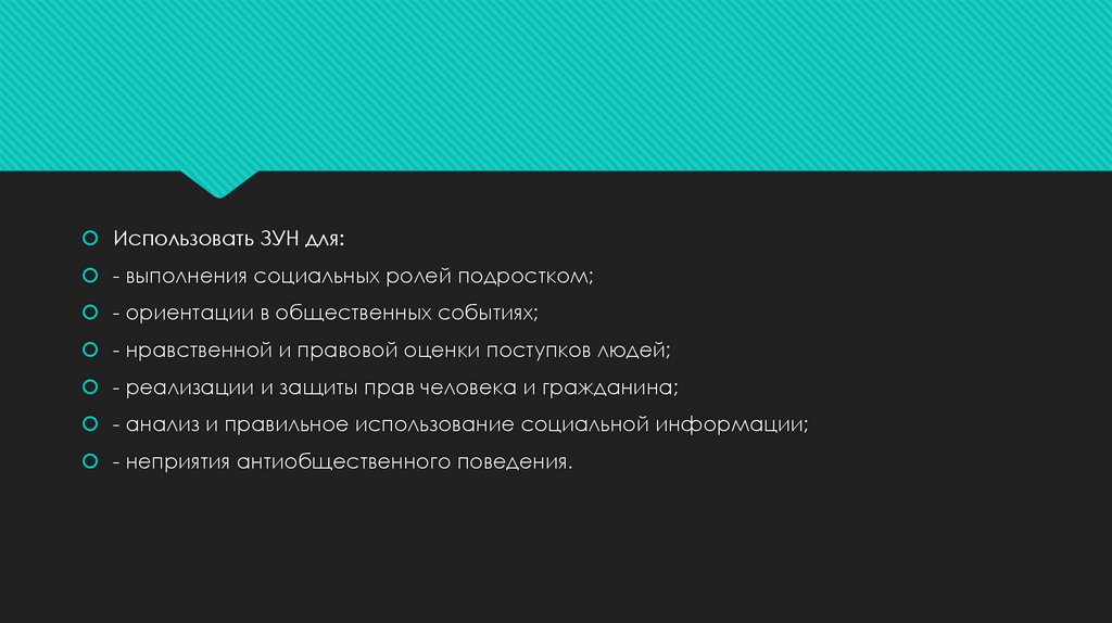 Использовать ЗУН для:- выполнения социальных ролей подростком;