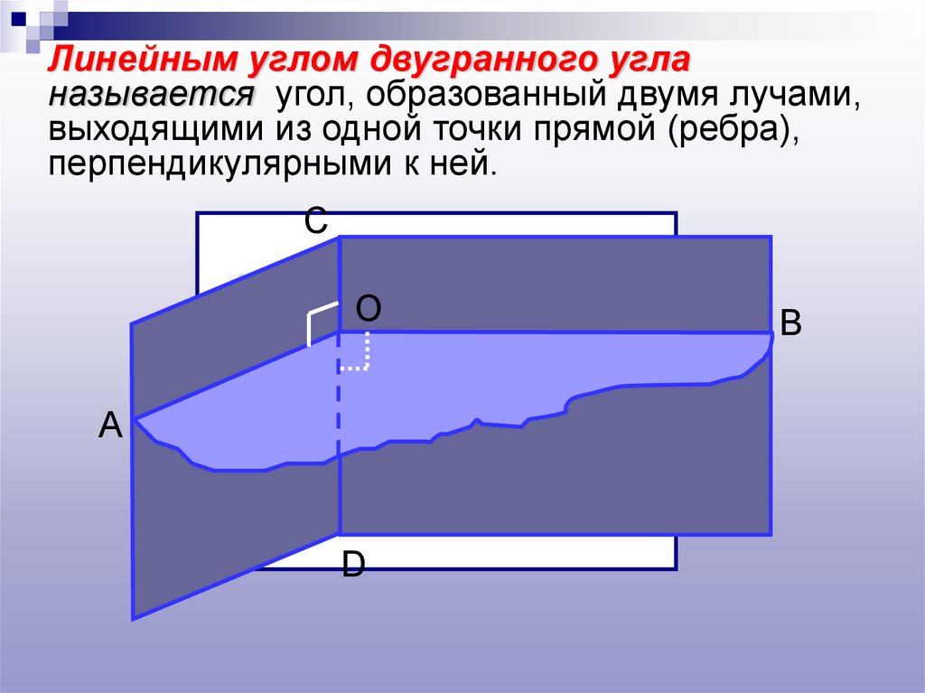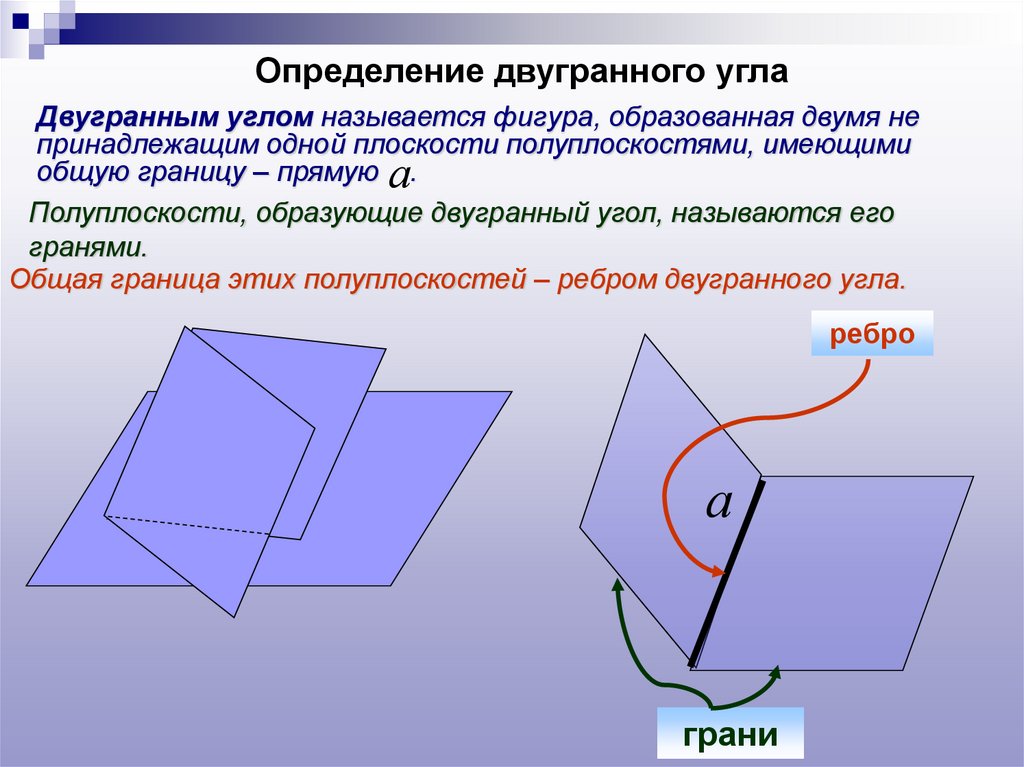 Общая граница этих полуплоскостей – ребром двугранного угла.