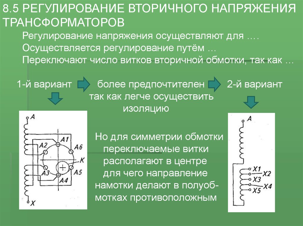 8.5 РЕГУЛИРОВАНИЕ ВТОРИЧНОГО НАПРЯЖЕНИЯТРАНСФОРМАТОРОВ
