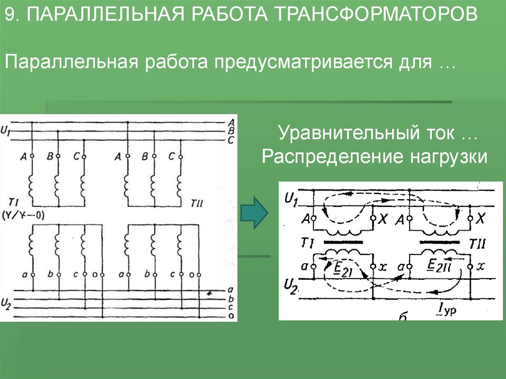 9. ПАРАЛЛЕЛЬНАЯ РАБОТА ТРАНСФОРМАТОРОВПараллельная работа предусматривается для …