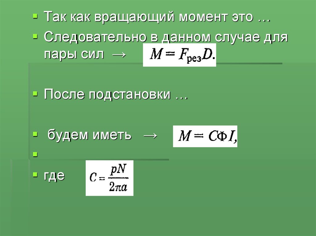 Так как вращающий момент это …Следовательно в данном случае для