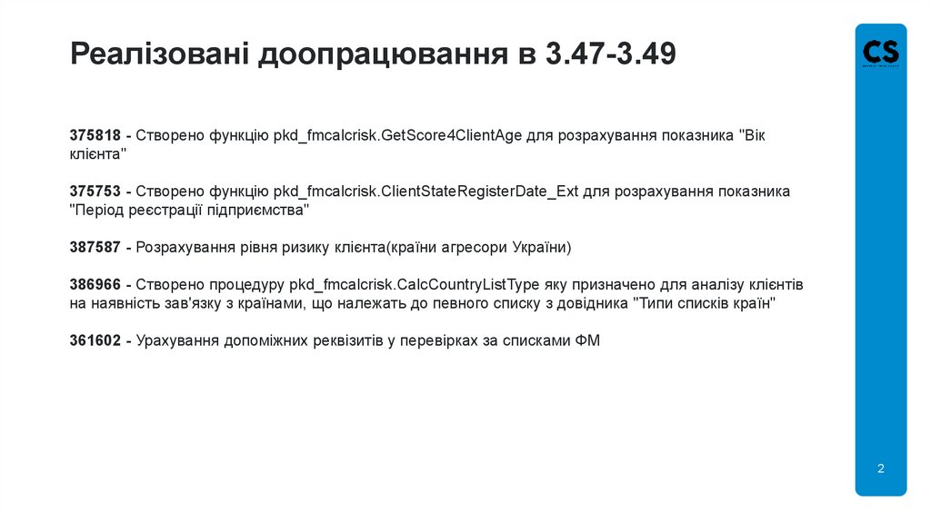 Реалізовані доопрацювання в 3.47-3.49375818 - Створено функцію pkd_fmcalcrisk.GetScore4ClientAge для розрахування показника "Вік