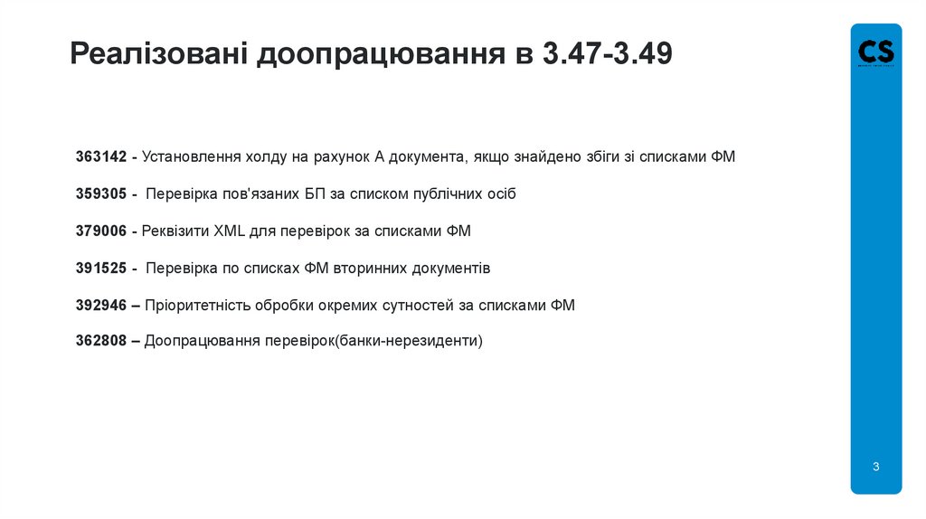 Реалізовані доопрацювання в 3.47-3.49363142 - Установлення холду на рахунок А документа, якщо знайдено збіги зі списками ФМ
