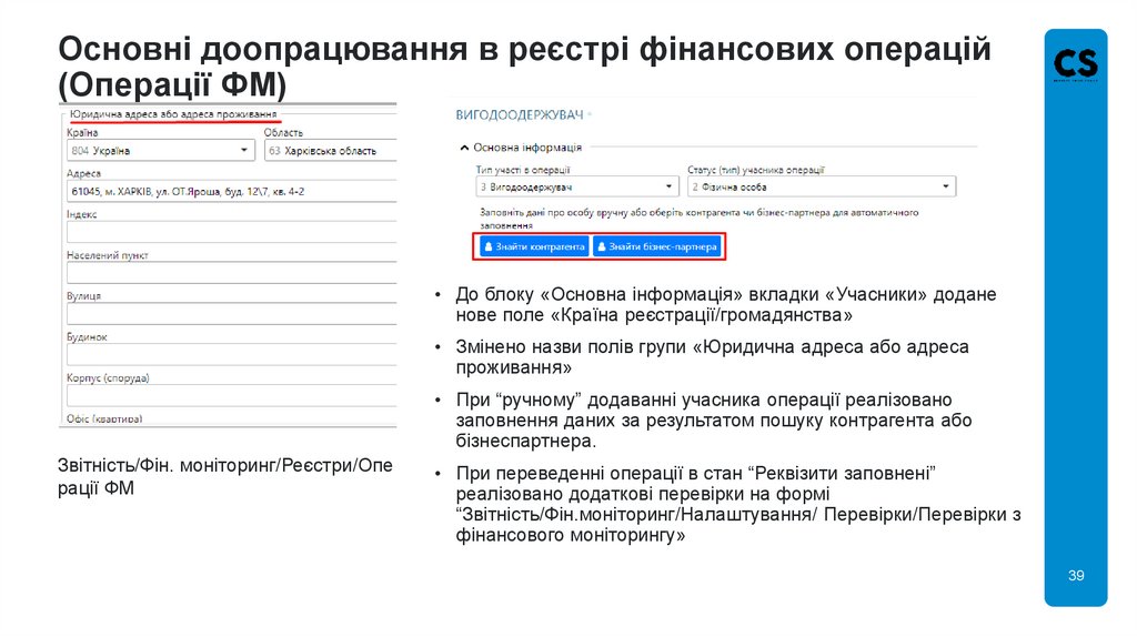 Основні доопрацювання у реєстрі підозрілоїфінансової діяльності