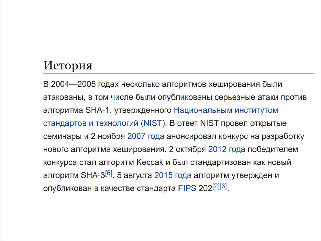 SHA-3 (Keccak — произносится как «кечак») —алгоритм хеширования переменной разрядности, разработанный группой