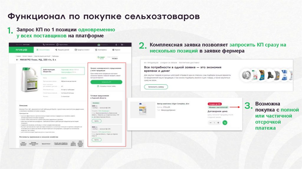 Функционал по покупке сельхозтоваровКП по 1 позиции одновременно