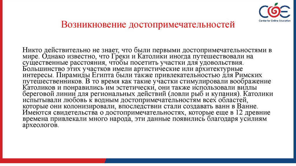 Возникновение достопримечательностейНикто действительно не знает, что были первыми достопримечательностями в