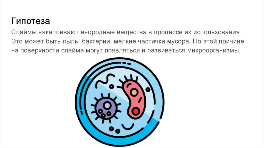 Цель проекта: исследовать слаймы на возможностьнакапливать в себе инородные вещества и микроорганизмы.