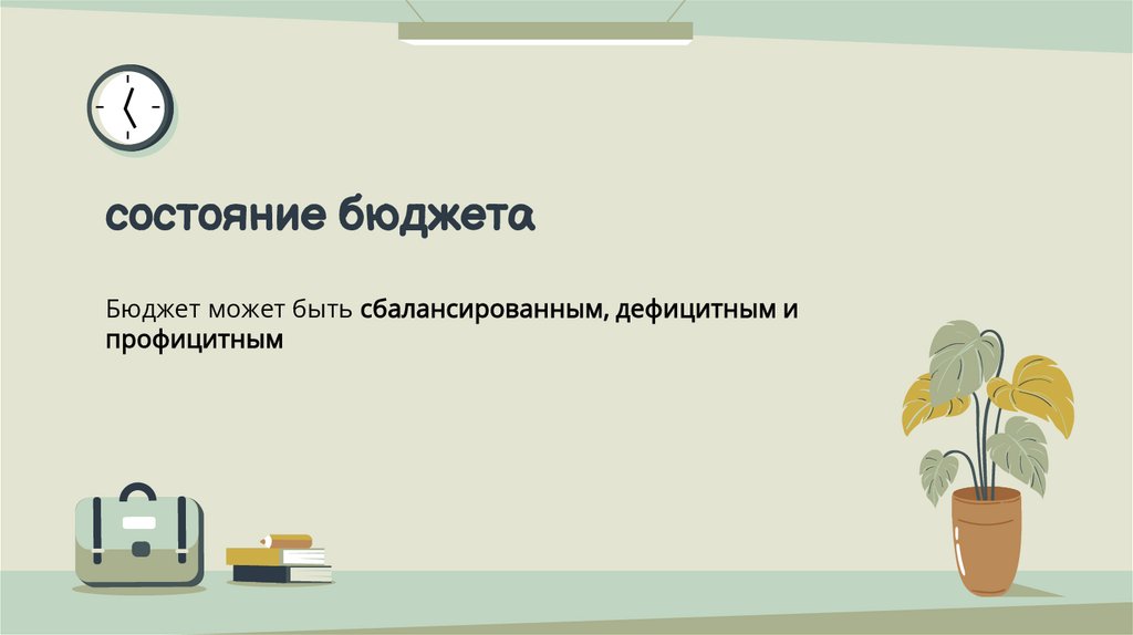 состояние бюджетаБюджет может быть сбалансированным, дефицитным и