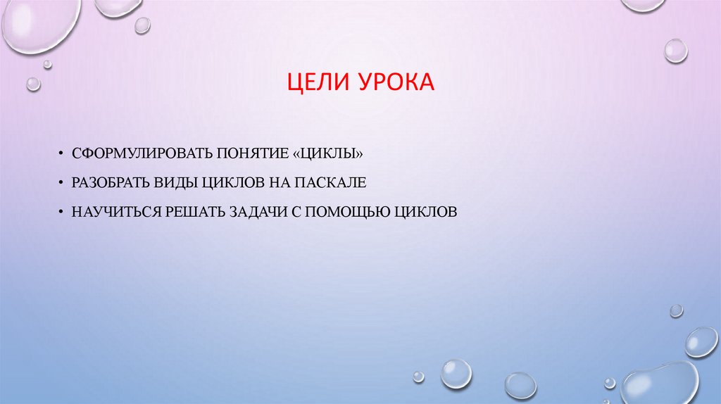 ЦЕЛИ УРОКА• СФОРМУЛИРОВАТЬ ПОНЯТИЕ «ЦИКЛЫ»