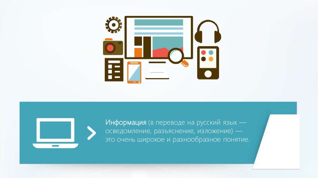 Информация (в переводе на русский язык —осведомление, разъяснение, изложение) —