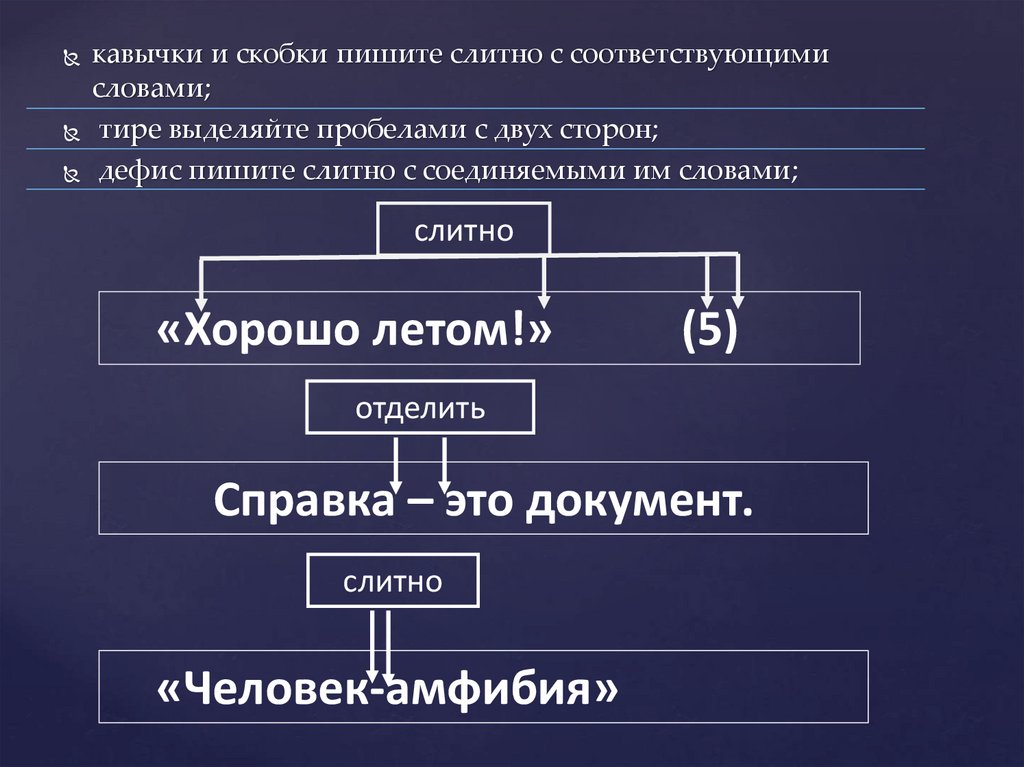 кавычки и скобки пишите слитно с соответствующимисловами;