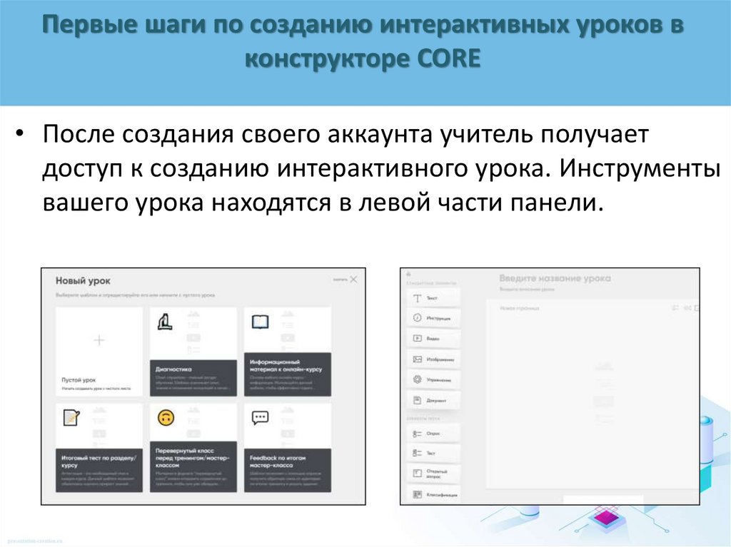 Первые шаги по созданию интерактивных уроков вконструкторе CORE