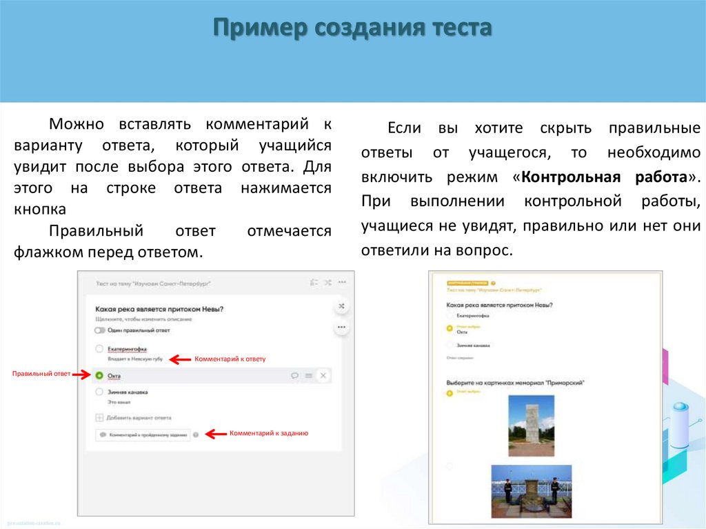 предусмотрена возможность просмотра созданного урока «глазами ученика»