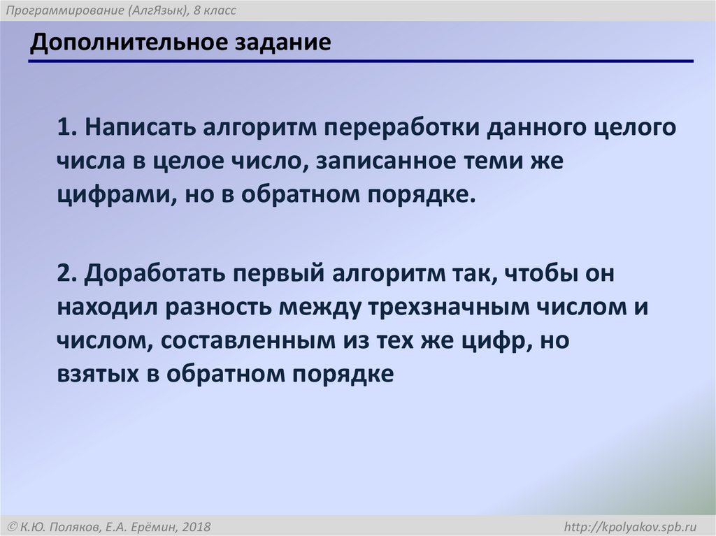 Программирование (АлгЯзык), 8 классДополнительное задание
