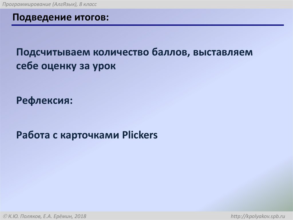 Программирование (АлгЯзык), 8 классПодведение итогов: