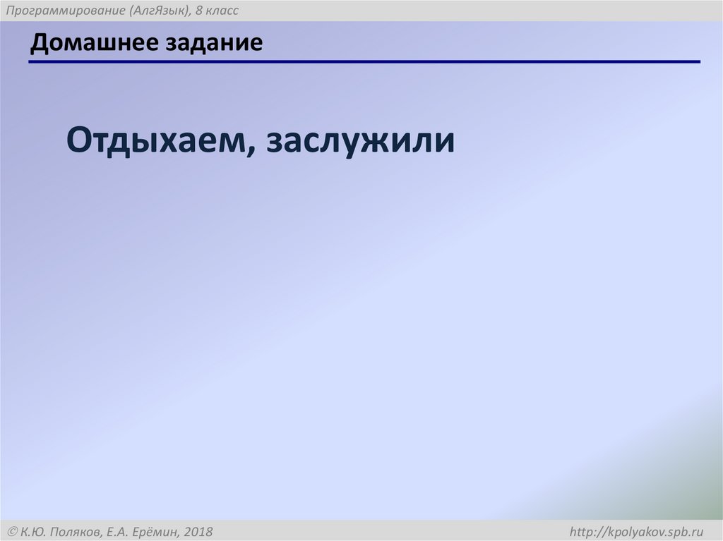 Программирование (АлгЯзык), 8 классДомашнее задание