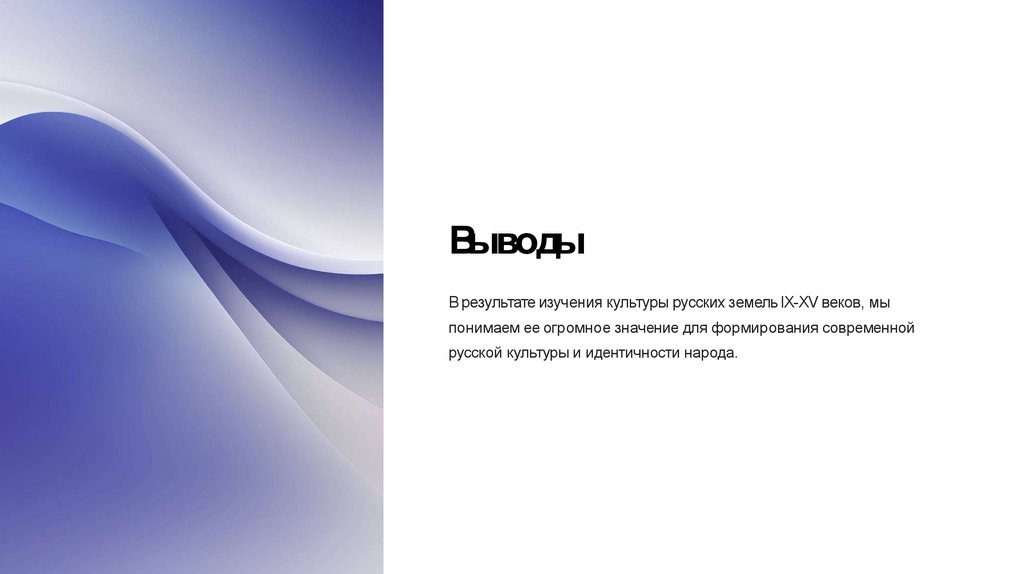 ВыводыВ результате изучения культуры русских земель IX-XV веков, мы