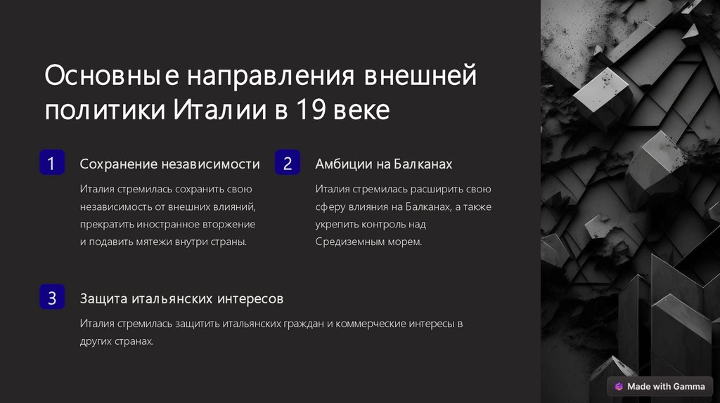 Основны е направления внешнейполитики Италии в 1 9 веке