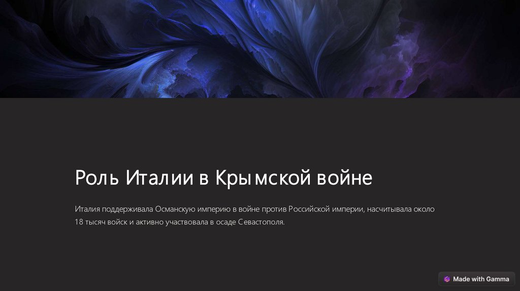 Роль Италии в Кры мской войнеИталия поддерживала Османскую империю в войне против Российской империи, насчитывала около