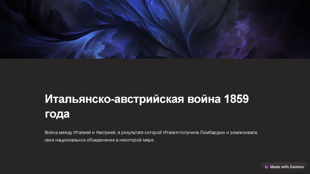 Война между Италией и Австрией, в результате которой Италия получила Ломбардию и реализовала
