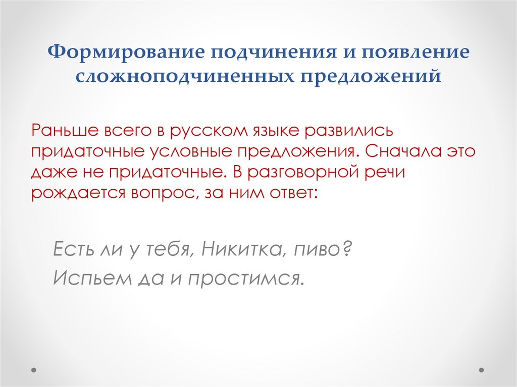 Начало XVI века - бурный рост союзных слов• Есть ли у тебя, Никитка, пиво, то испьем да и