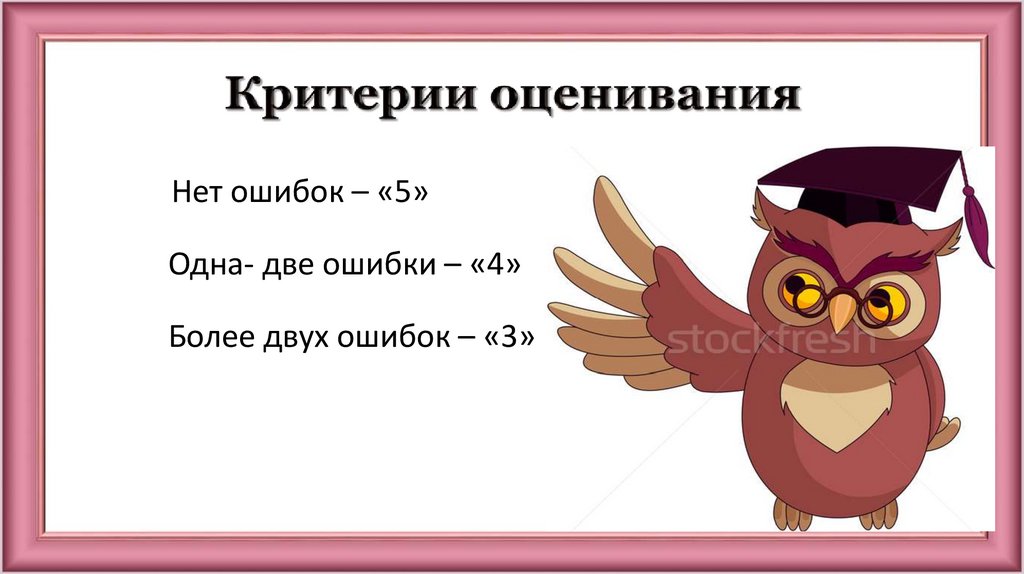 Нет ошибок – «5»Одна- две ошибки – «4»