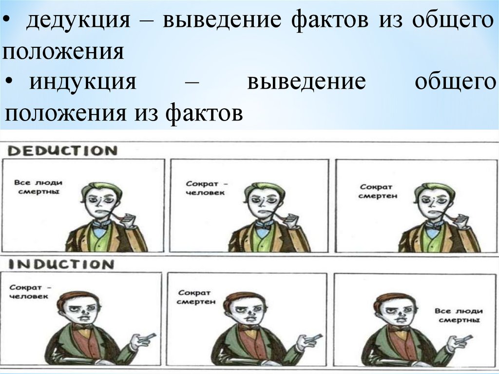 • дедукция – выведение фактов из общегоположения
