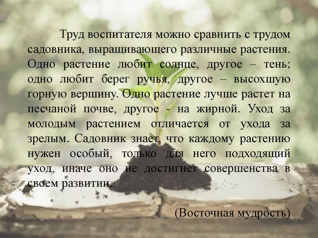 Труд воспитателя можно сравнить с трудомсадовника, выращивающего различные растения.