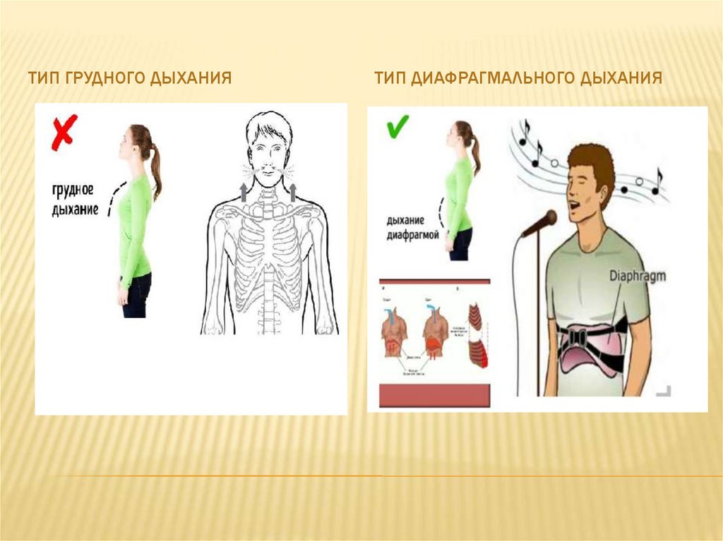 ТИП ГРУДНОГО ДЫХАНИЯТИП ДИАФРАГМАЛЬНОГО ДЫХАНИЯ