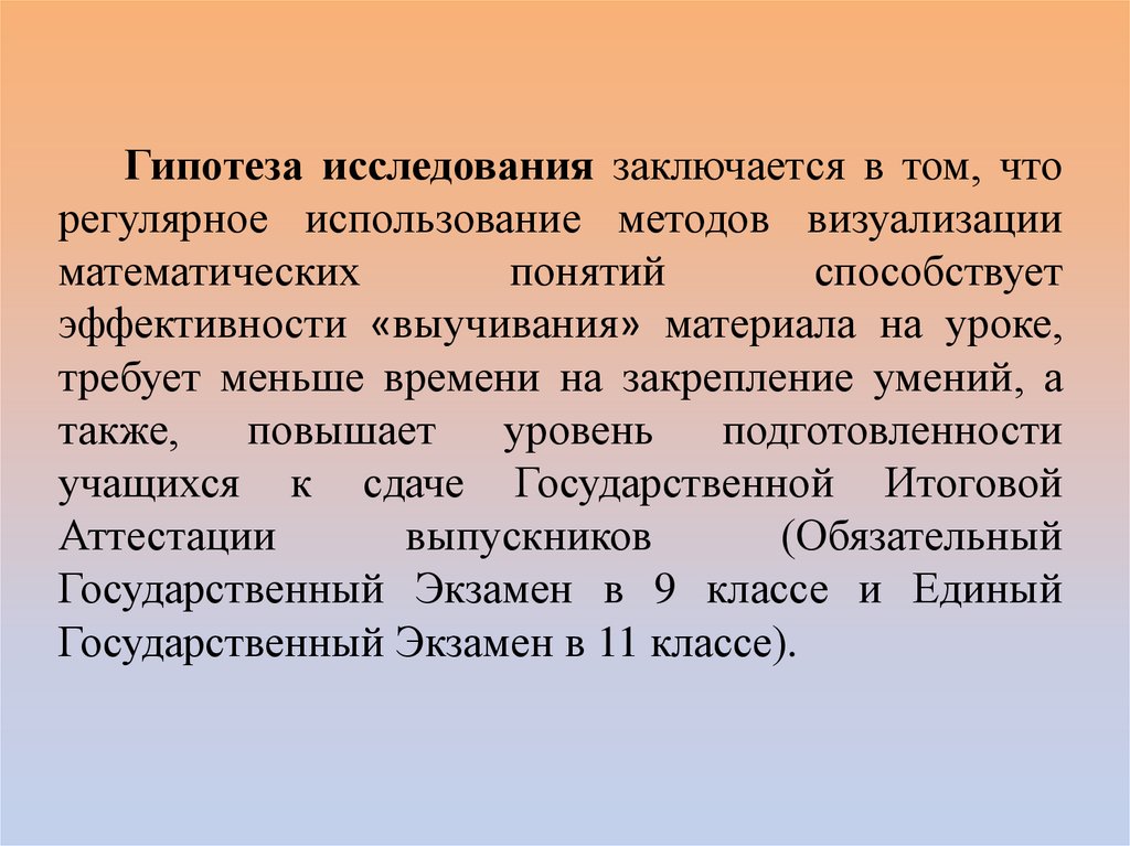 Гипотеза исследования заключается в том, чторегулярное использование методов визуализации