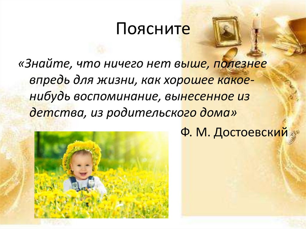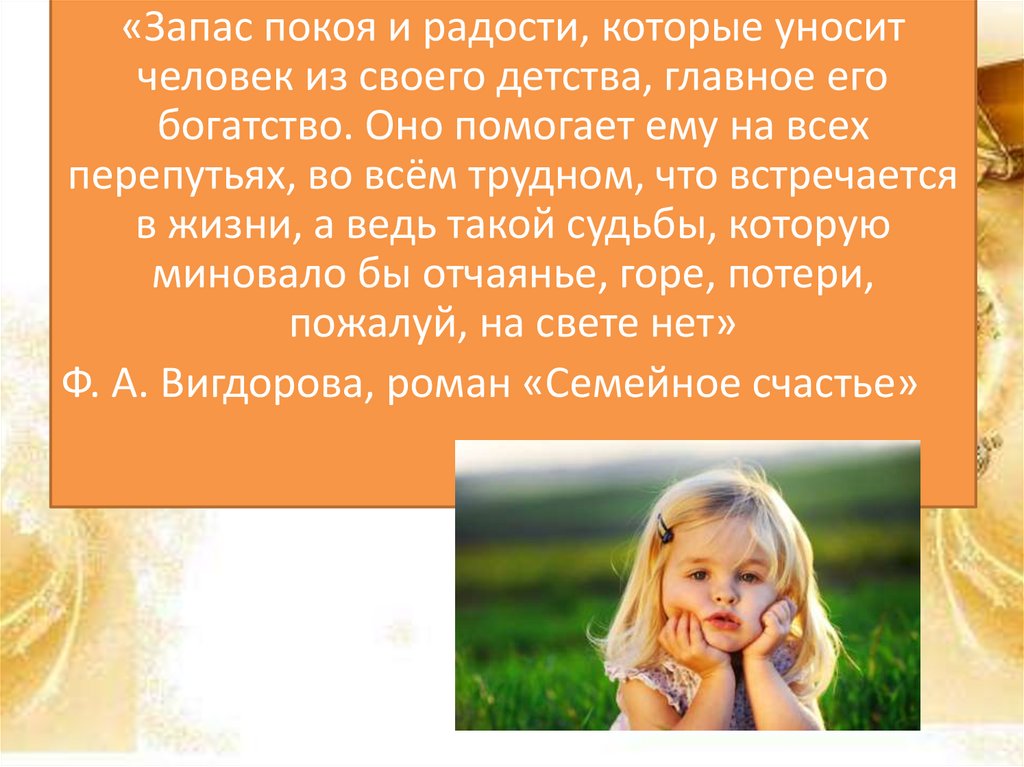 «Запас покоя и радости, которые уноситчеловек из своего детства, главное его