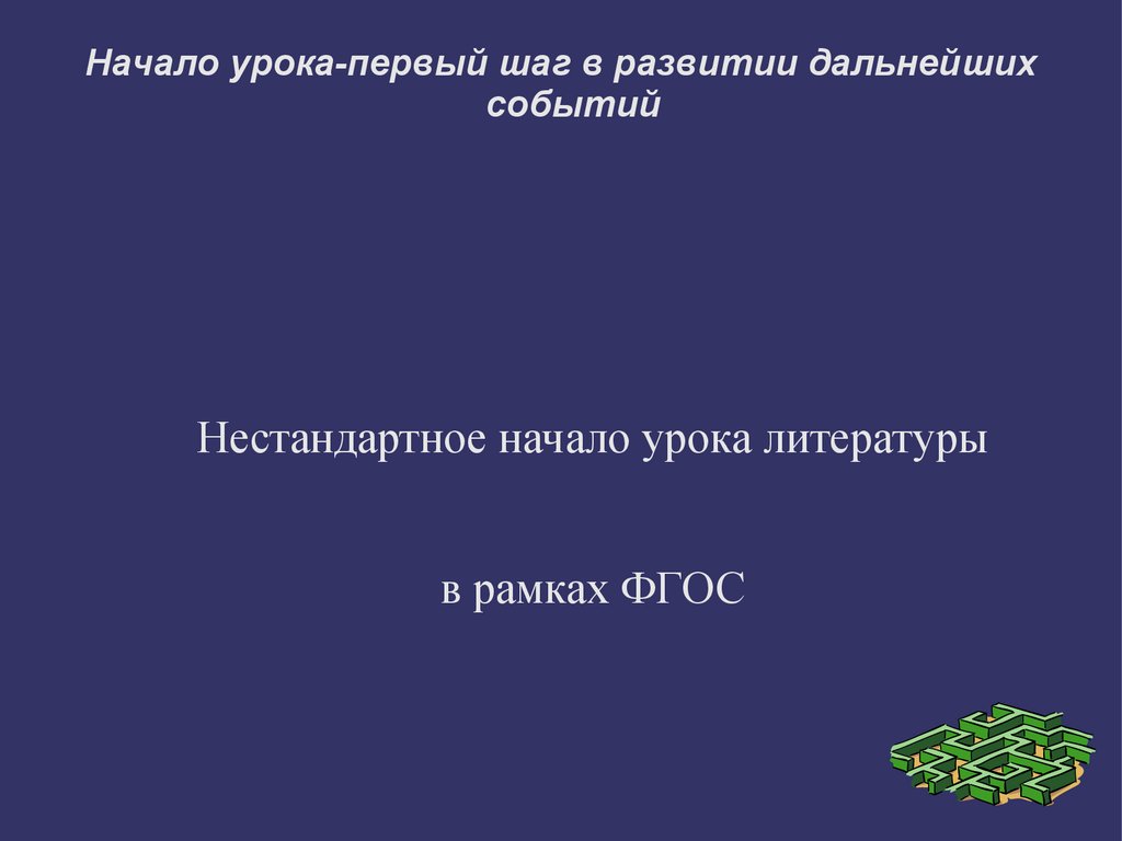 Начало урока-первый шаг в развитии дальнейшихсобытий