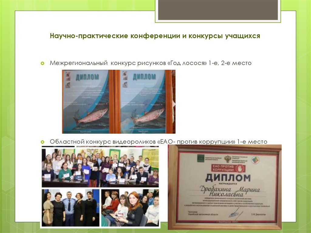 Научно-практические конференции и конкурсы учащихсяМежрегиональный конкурс рисунков «Год лосося» 1-е, 2-е место