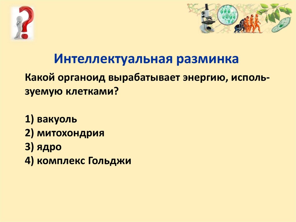 Интеллектуальная разминкаКакой органоид клетки по его функции