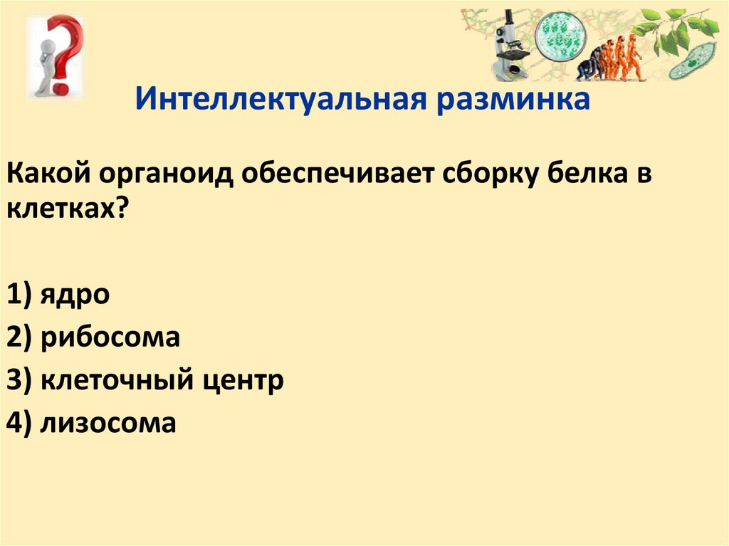 Интеллектуальная разминкаКакой органоид обеспечивает сборку белка в