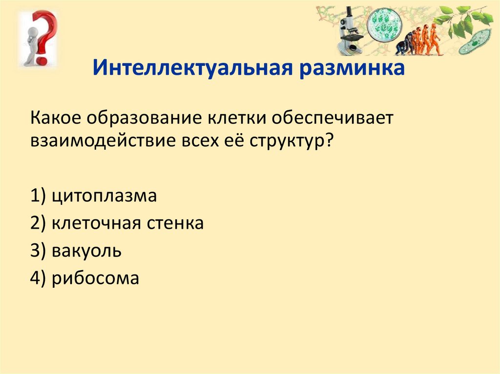 Интеллектуальная разминкаКакое образование клетки обеспечивает