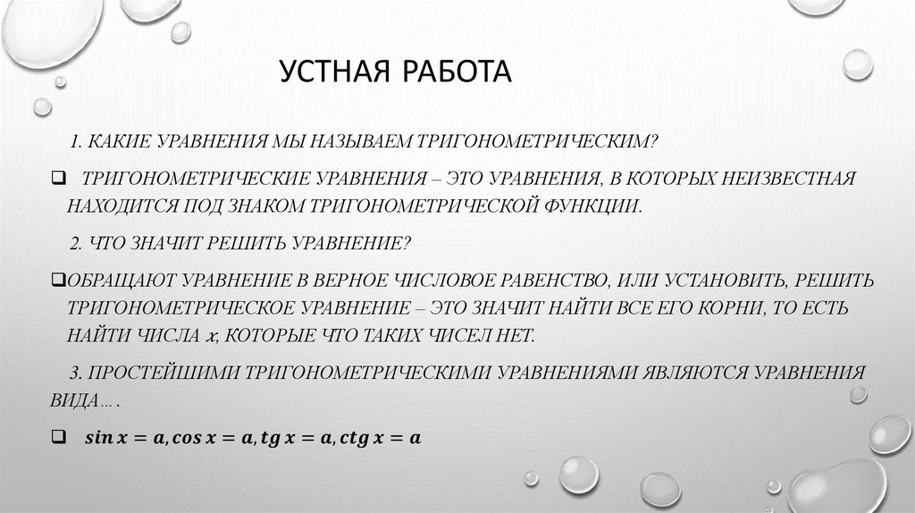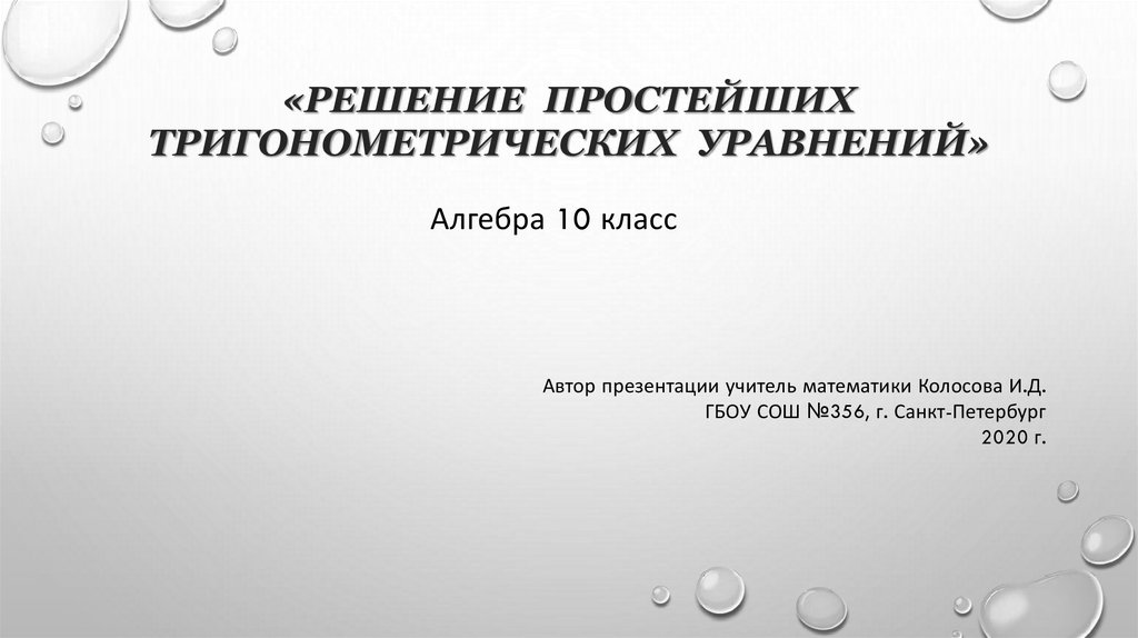 Решение простейших тригонометрических уравнений (алгебра, 10 класс)