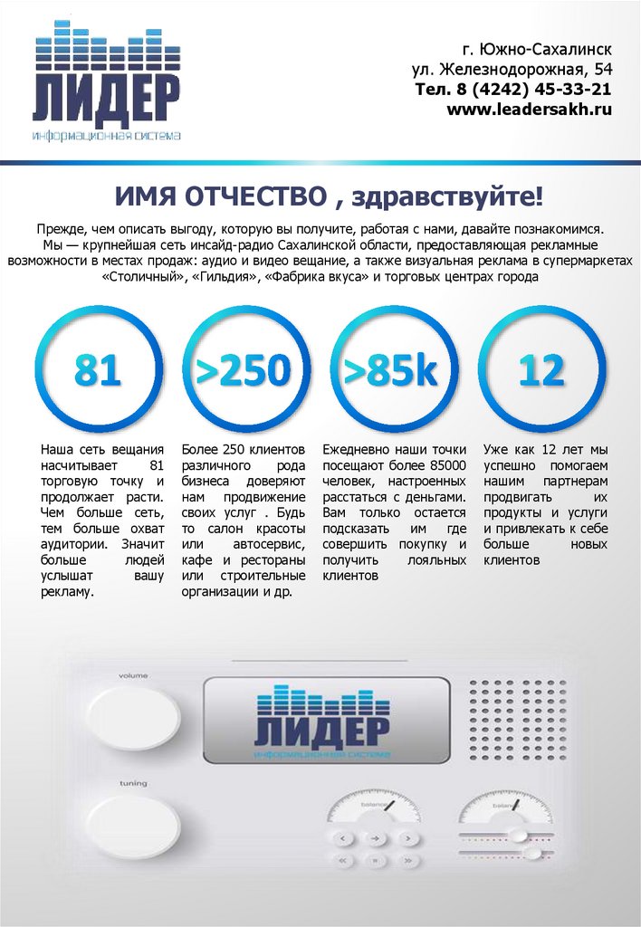 Крупнейшая сеть инсайд-радио Сахалинской области, предоставляющая рекламные возможности