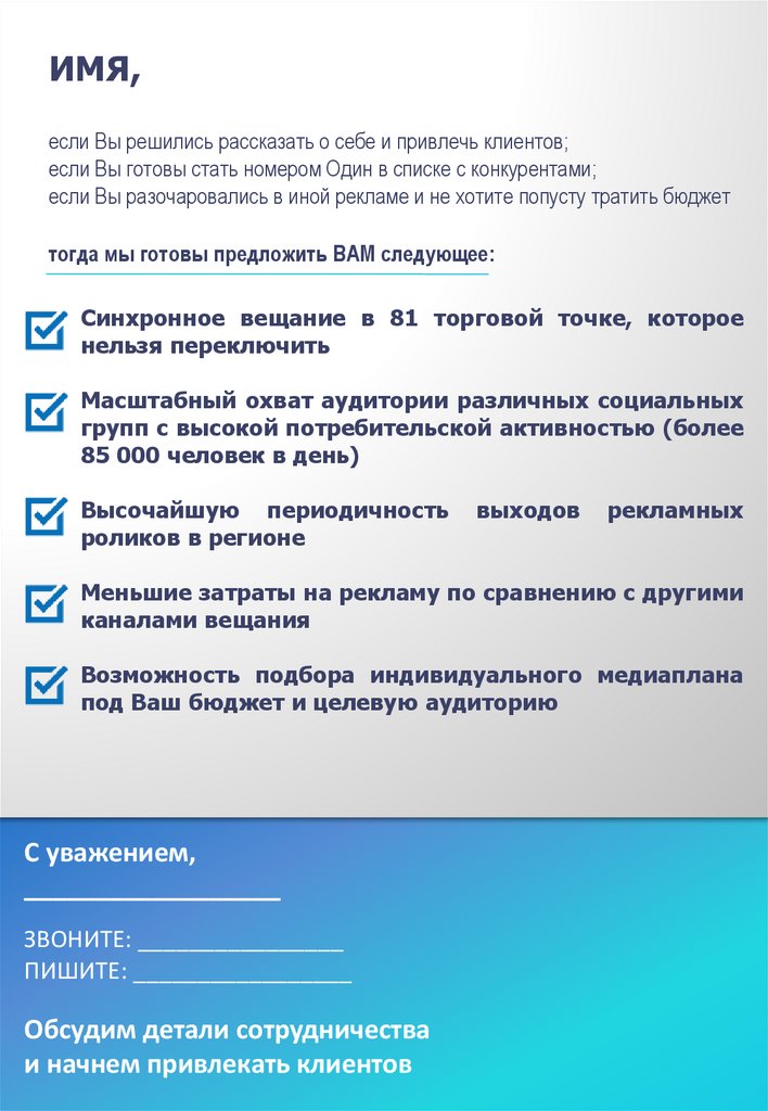 возможности в местах продаж: аудио и видео вещание, а также визуальная реклама в супермаркетах