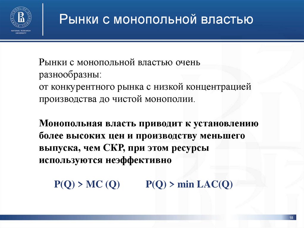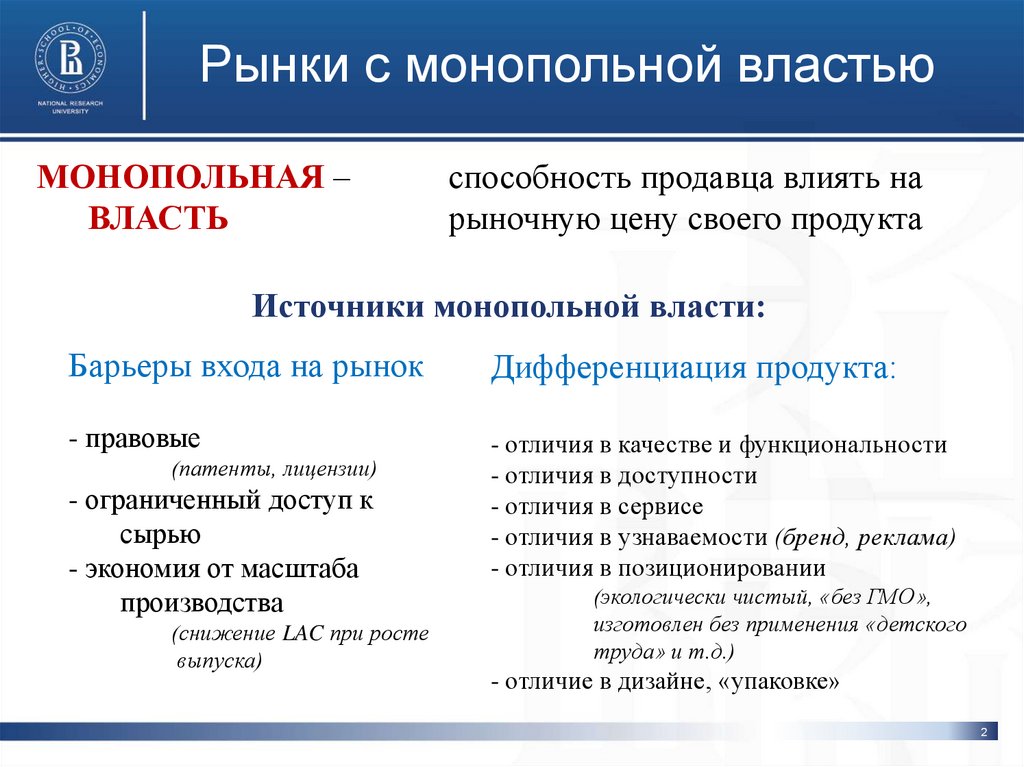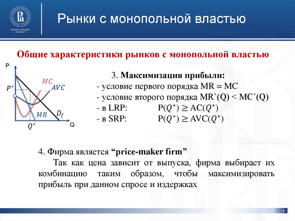 Рынки с монопольной властьюОбщие характеристики рынков с монопольной властью