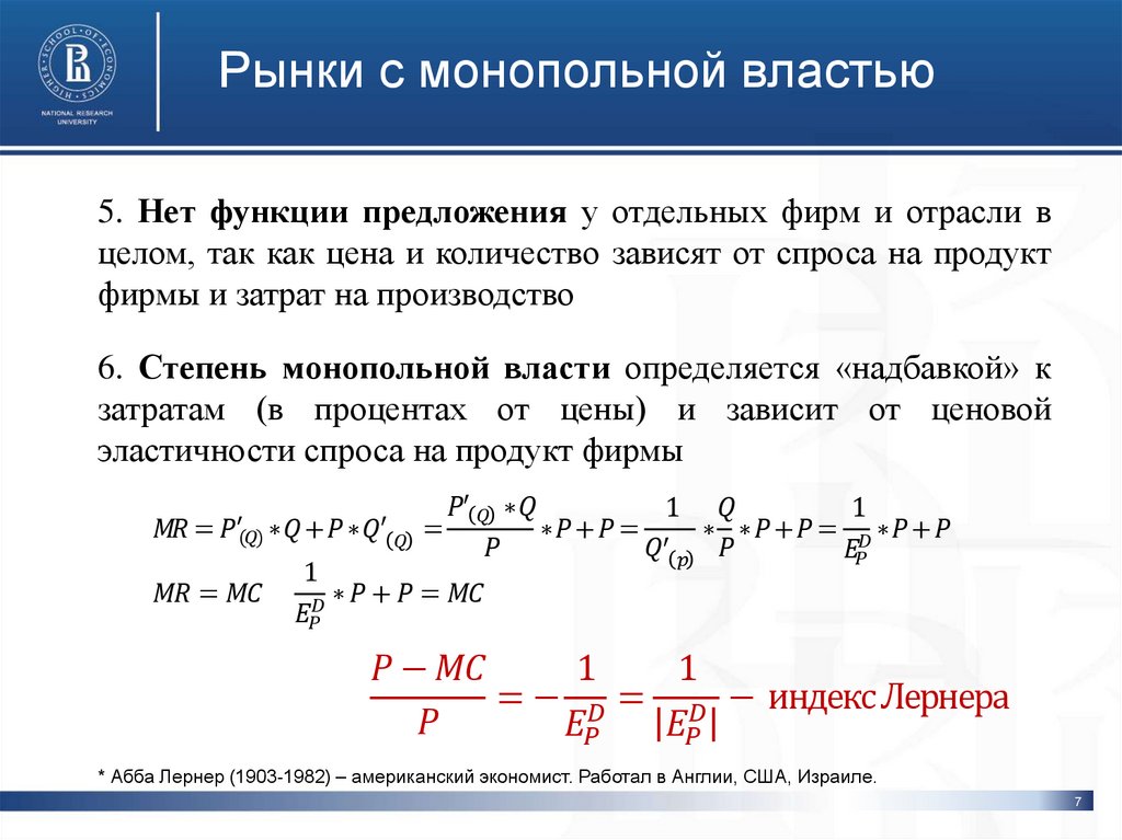 Рынки с монопольной властьюМОНОПОЛЬНАЯ –