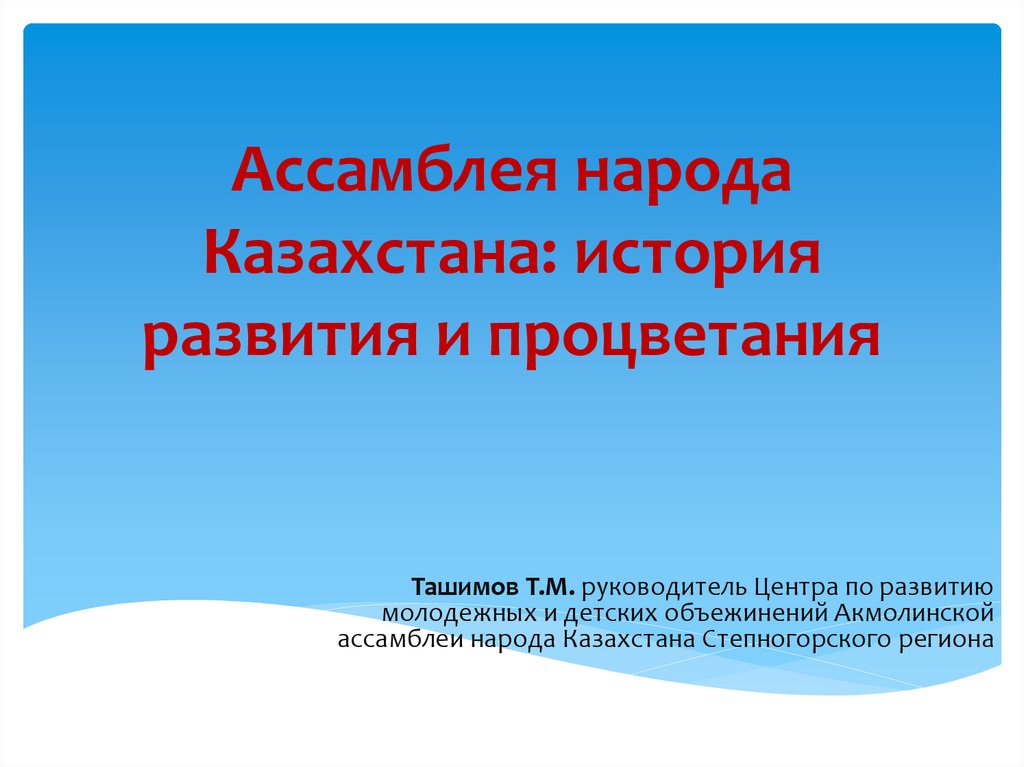 Ташимов Т.М. руководитель Центра по развитиюмолодежных и детских объежинений Акмолинской