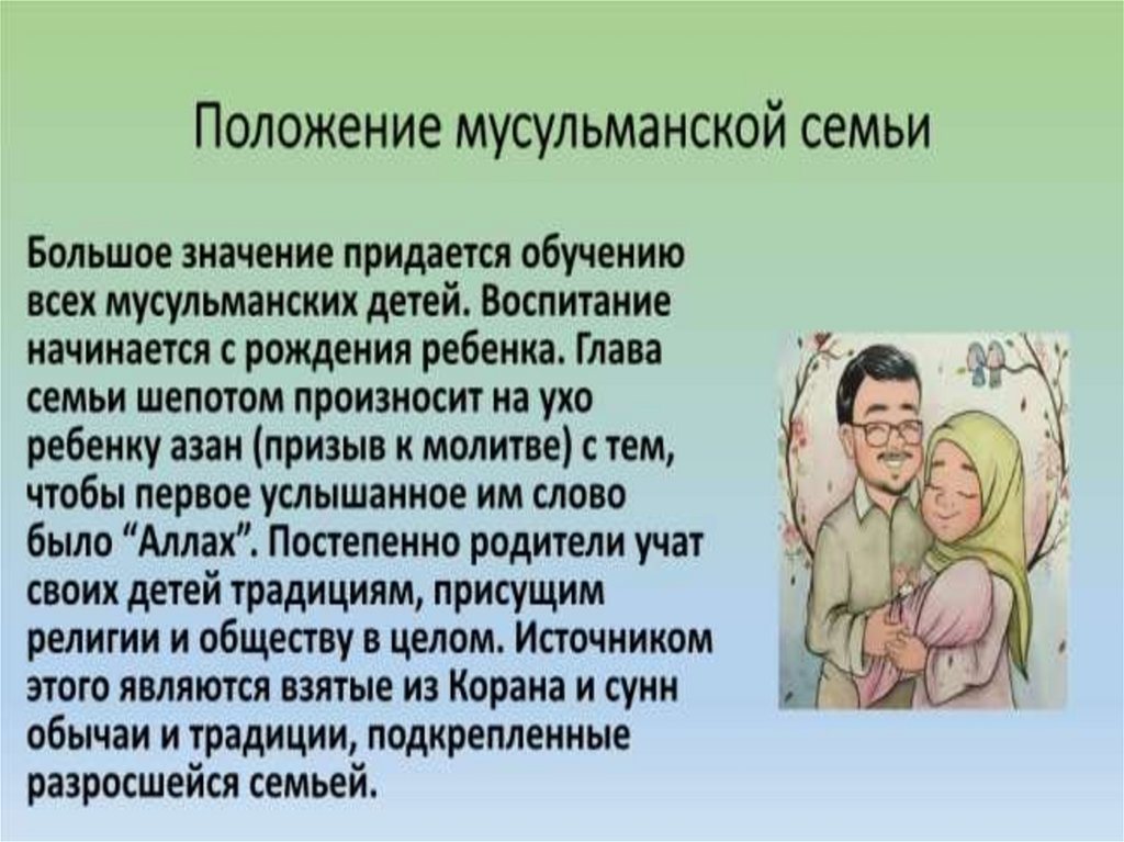 Характеристика психолого-педагогических особенностей мусульманской семьи