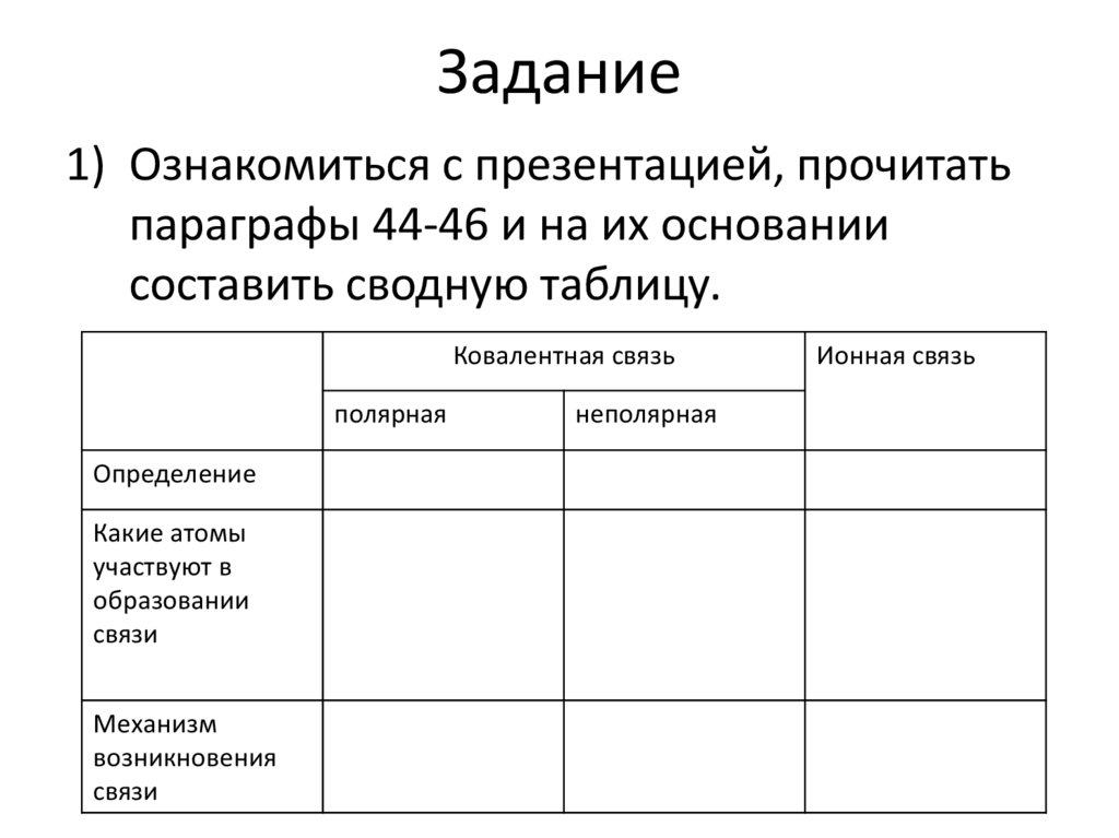 Задание1) Ознакомиться с презентацией, прочитать